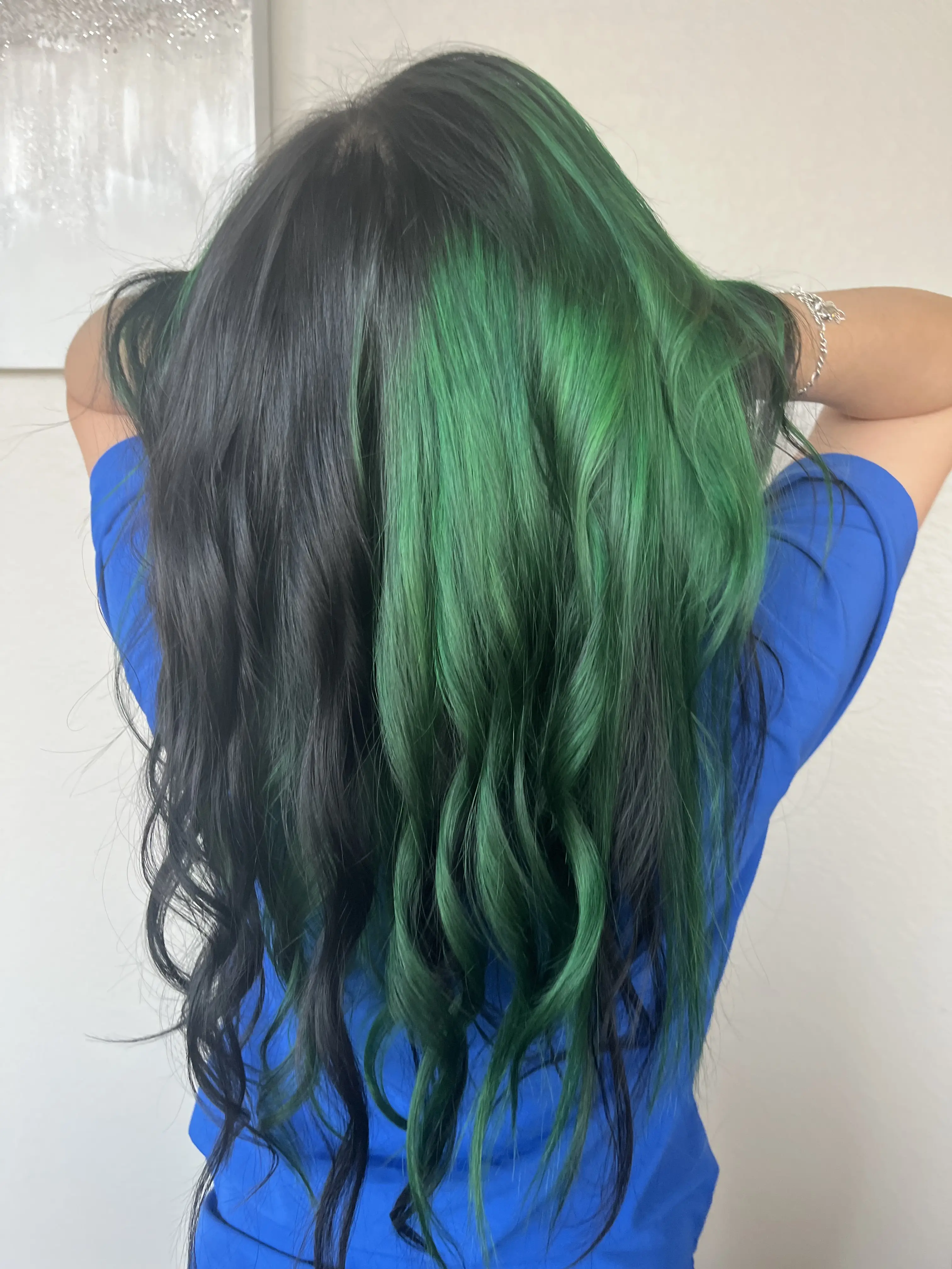 This can be half & half or underneath & top of hair. Could also be a color blocking technique.