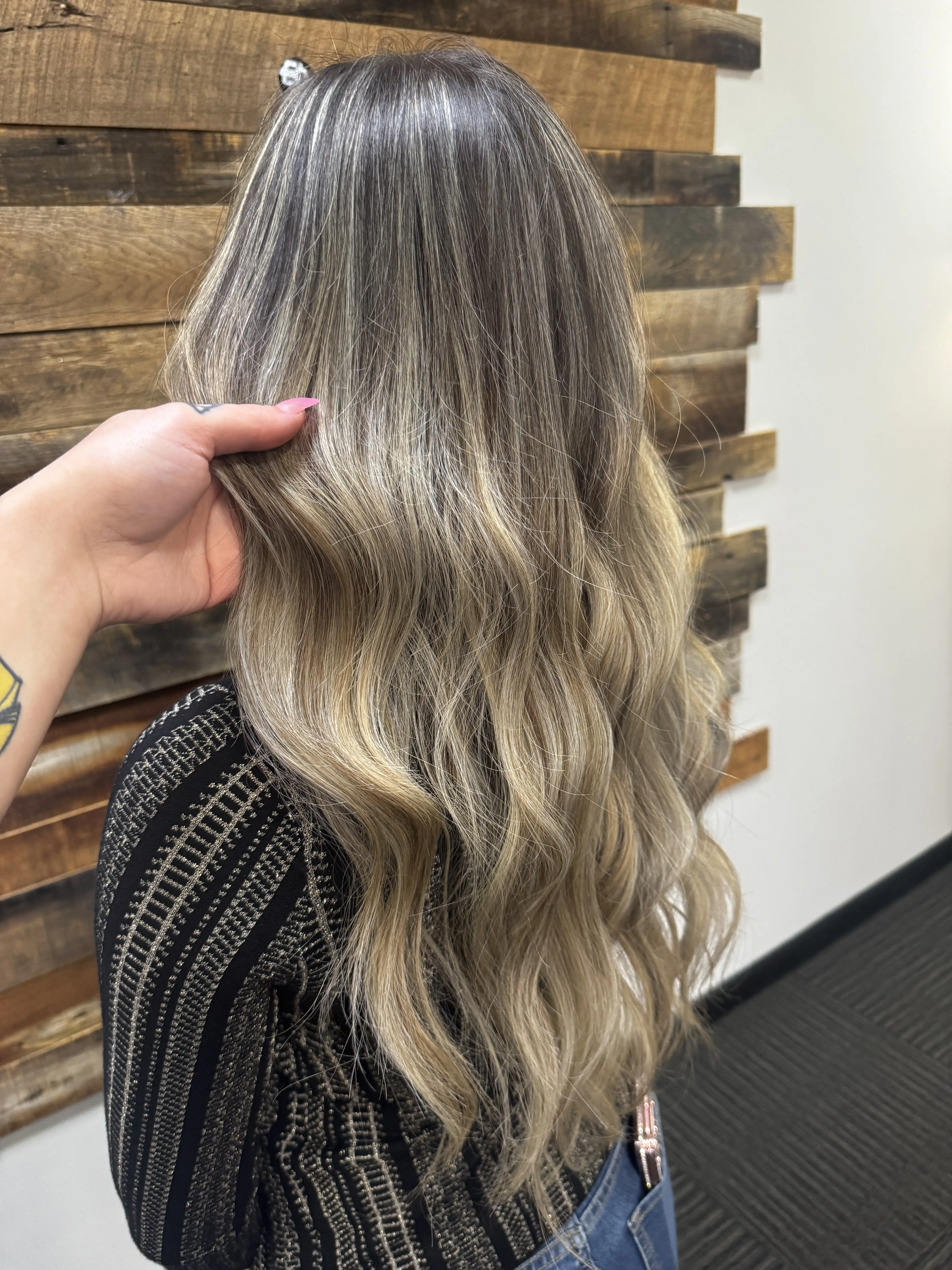 Foils done to the scalp, can add on a root smudge for a blurred effect to give effortless grow out. All highlight services receive a toner. Pricing is a starting point based on amount of lightening you’d like. Includes 1oz lightener, 1.5oz toner and blowdry with style. Starts at mini highlight pricing, additional bowls of color add +$25.