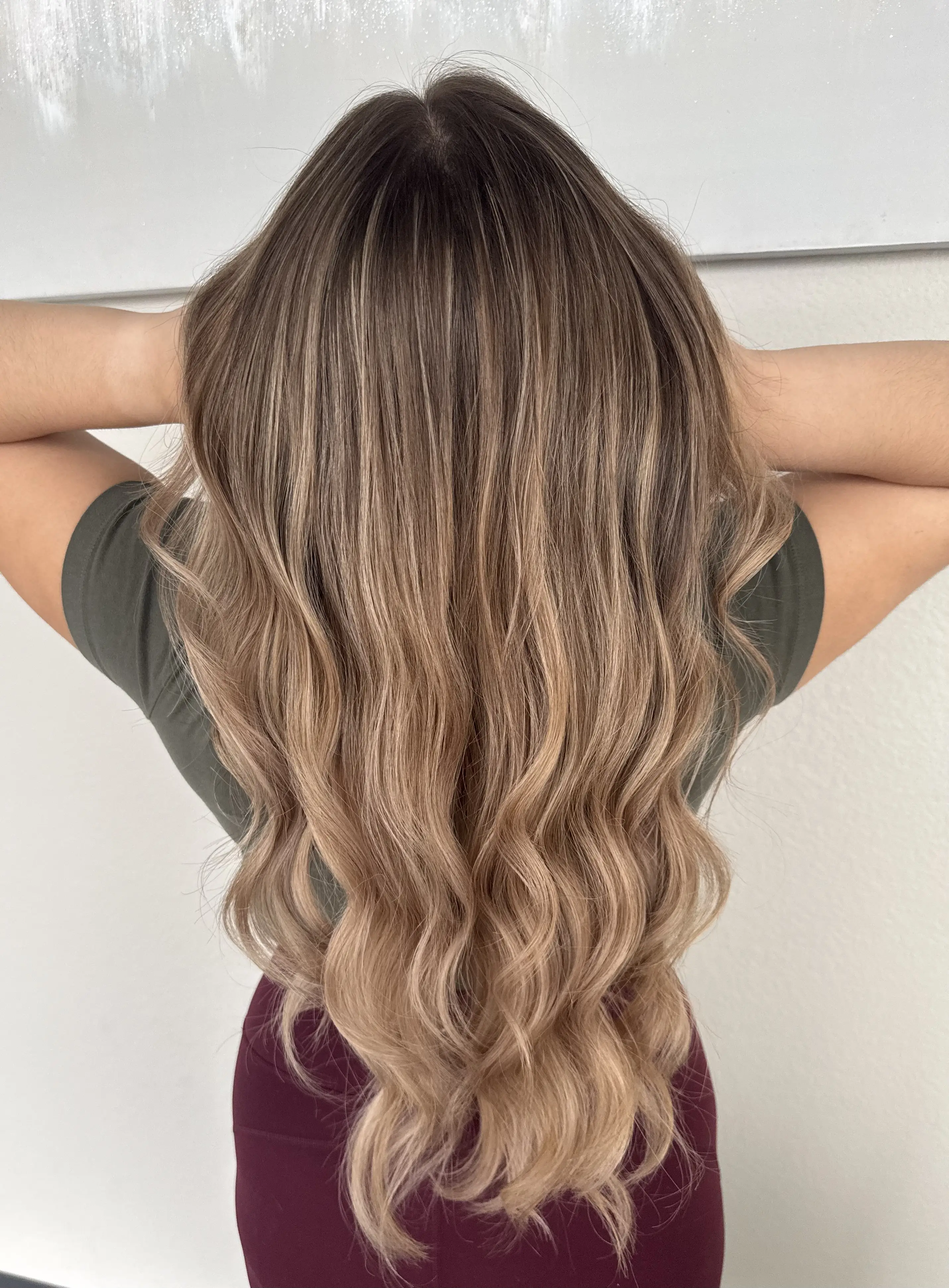 Airtouch Balayage is an advanced lightening technique that delivers seamlessly blended, natural-looking dimension with incredibly soft regrowth. Using controlled air flow instead of traditional teasing, it gently separates shorter and weaker hairs, allowing for more precise application and reduced damage. This method creates a sophisticated, sun-kissed effect that grows out beautifully, minimizing the need for frequent salon visits. Ideal for clients seeking luxury color with a low-maintenance finish, Airtouch Balayage offers a refined, modern result tailored specifically to your hair type and lifestyle.